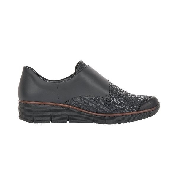 Mocassin Rieker 537C0-00 à velcro femme en cuir noir.