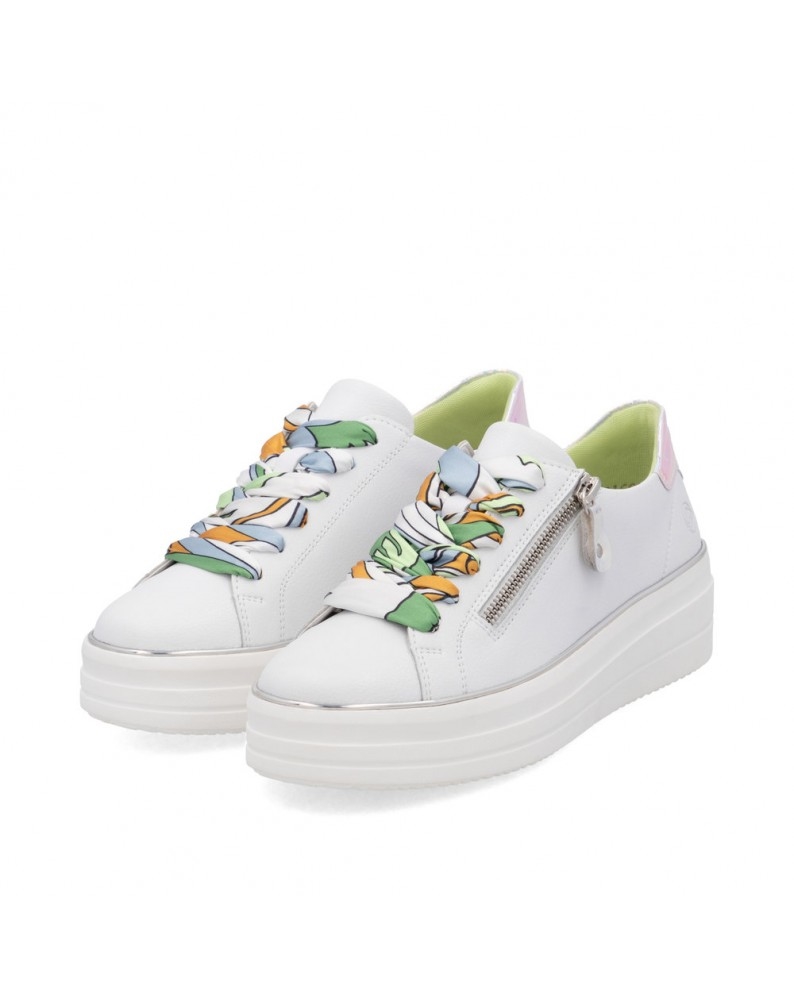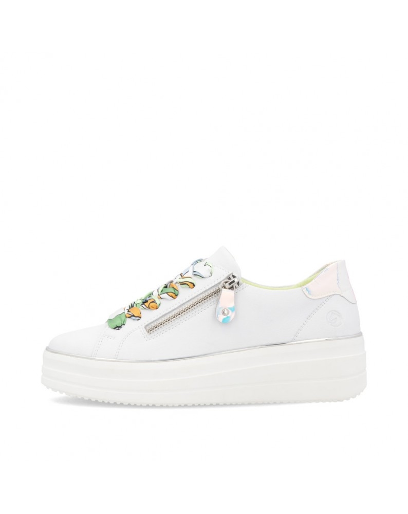 Ce tennis Remonte D1c06-80 en cuir blanc est idéal pour adopter un style moderne et sportswear. Très agréable avec ses semelles intérieures, ce sneaker vous garantit un confort optimal et un excellent maintien. Facile à chausser avec son zip latéral et son lacet, il va sublimer toutes vos tenues d’été!