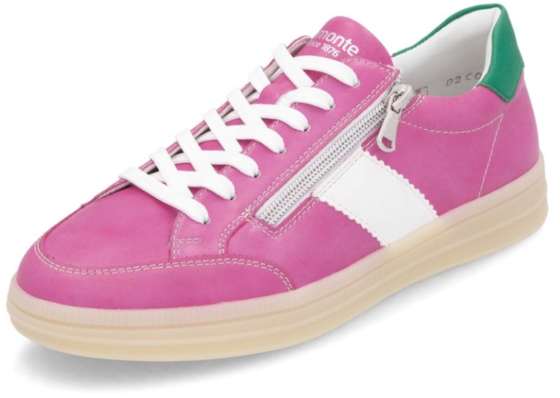 Ce tennis Remonte D2c02-31 en cuir fushia et blanc est idéal pour adopter un style moderne et sportswear. Très agréable avec ses semelles intérieures, ce sneaker vous garantit un confort optimal et un excellent maintien. Facile à chausser avec son zip latéral et son lacet, il va sublimer toutes vos tenues d’été!