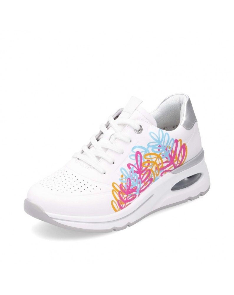Ce tennis Remonte D2h02-80 en cuir blanc et multi est idéal pour adopter un style moderne et sportswear. Très agréable avec ses semelles intérieures, ce sneaker vous garantit un confort optimal et un excellent maintien. Facile à chausser avec son lacet, il va sublimer toutes vos tenues d’été!