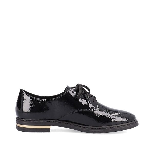 Derbies femme RIEKER 50618 00 en cuir et textile noir vernis.