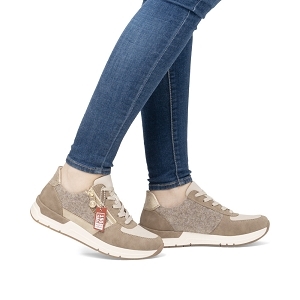 Ces baskets Rieker 58902-64 en cuir et textile beige or est idéal pour adopter un style moderne et élégant.Très agréable, ces chaussures vous garantit un confort optimal et un excellent maintien. Facile à chausser avec ces lacets et son zip, ces sneakers vont sublimer toutes vos tenues d’hiver.