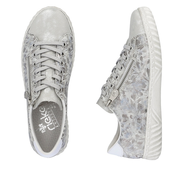 Ces baskets Rieker n0900-90 blanc métallic est idéal pour adopter un style moderne. Très agréable avec ses semelles intérieures. Facile a chausser grace à son lacets et son zip, ces chaussures vous garantissent un confort optimal et un excellent maintien.Il va sublimer toutes vos tenues d’été!